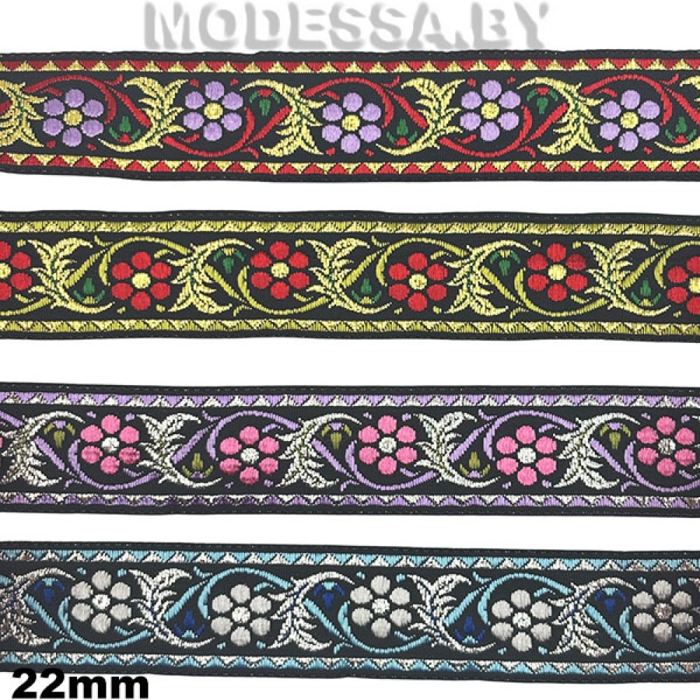 Жаккардовая лента с люрексом — это тип декоративной ленты, известной своими детализированными тканными узорами, созданными с помощью жаккардовой техники ткачества. Плотная лента используется для декоративной отделки одежды, аксессуаров и др. Арткул: 2510. Ширина 22мм.