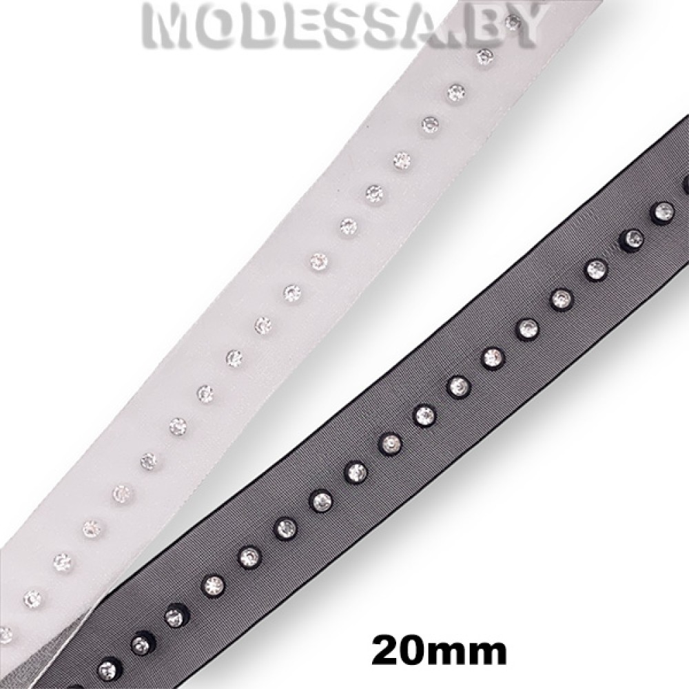 Тесьма декоративная со стразами в пластмассовой оправе на органзе. Артикул: 417 RS. Ширина 20мм. Используется для декоративной отделки одежды и аксессуаров.