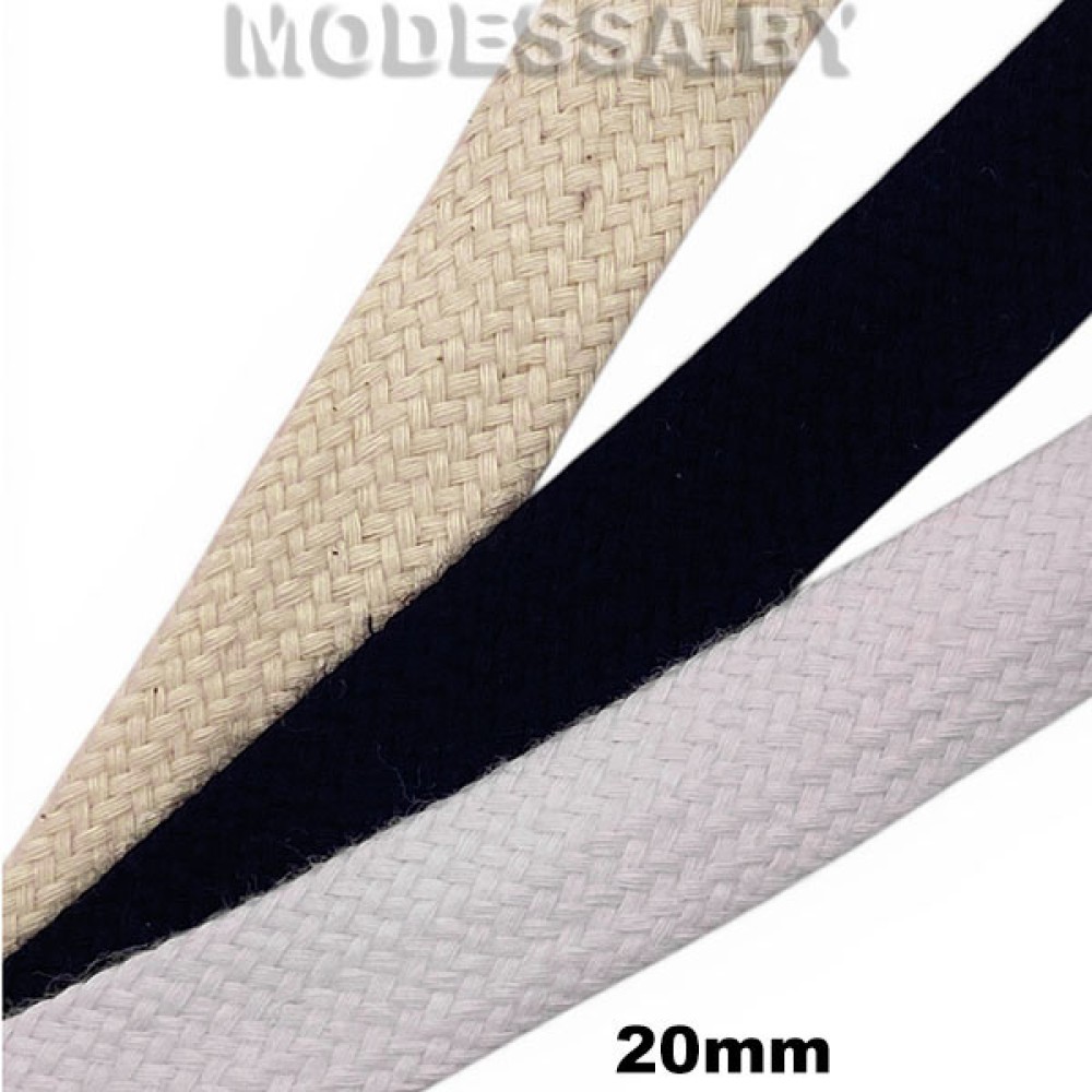 Шнур вязаный хлопковый, плоский. Ширина 20мм. В производстве одежды наиболее популярен как шнур для толстовок, худи, трикотажных брюк, спортивных костюмов и др.