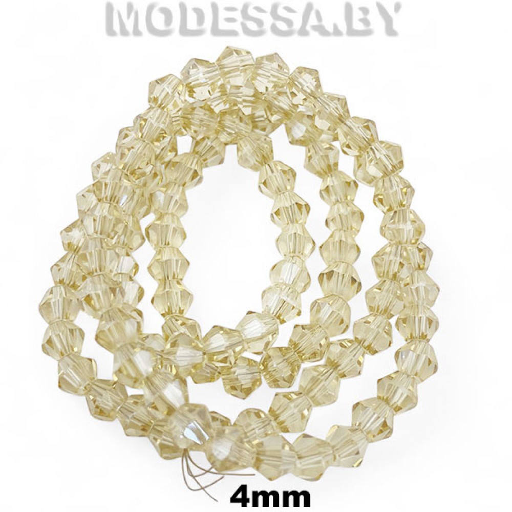 Бусины стеклянные граненые на нити биконусы (1нить=97шт), диаметр 4мм. Идеально подойдут для плетения браслетов, чокеров, колье, украшения ободков и других ювелирных изделий. Граненые хрустальные бусины кристаллы очень ярко переливаются, блестят. Бусины на нити так же подойдут для декора одежды и предметов интерьера и др.