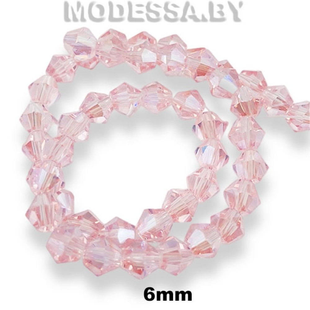 Бусины стеклянные граненые на нити биконусы (1нить=46шт), диаметр 6мм. Идеально подойдут для плетения браслетов, чокеров, колье, украшения ободков и других ювелирных изделий. Граненые хрустальные бусины кристаллы очень ярко переливаются, блестят. Бусины на нити так же подойдут для декора одежды и предметов интерьера и др.