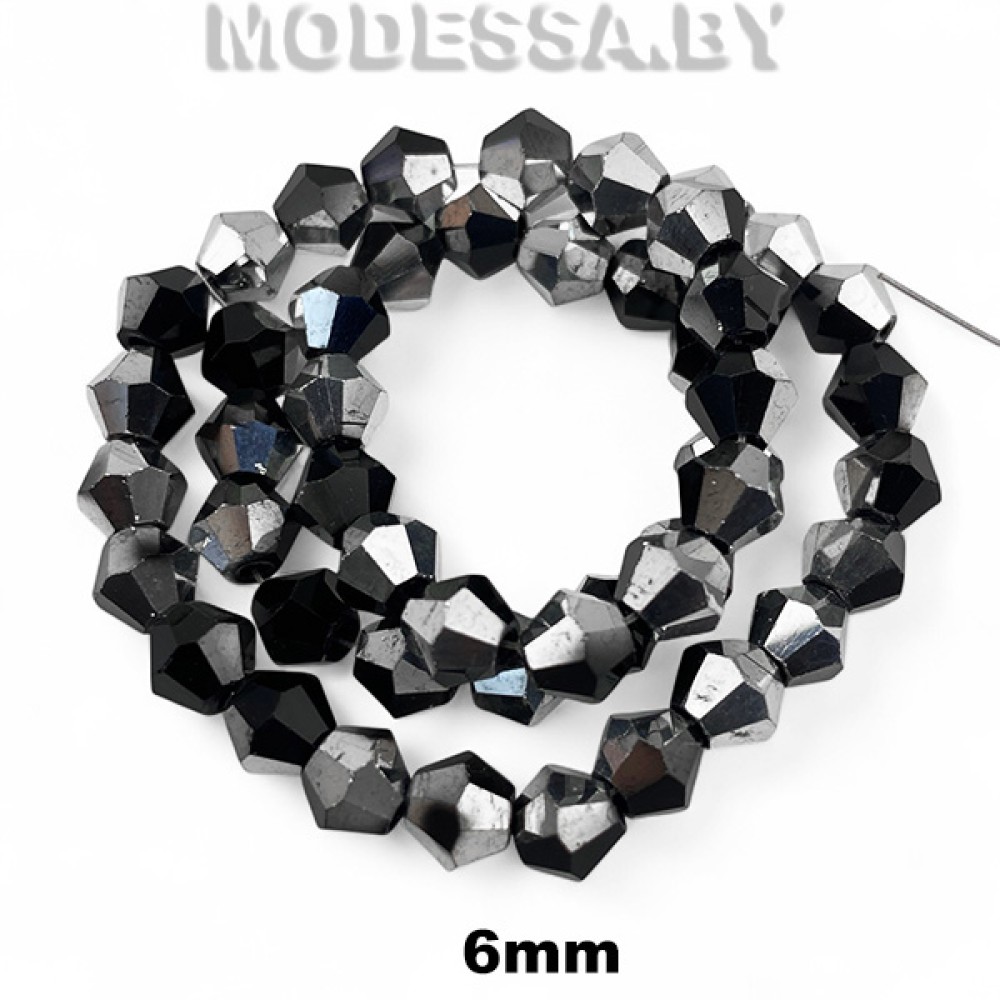 Бусины стеклянные граненые на нити биконусы (1нить=46шт), диаметр 6мм. Идеально подойдут для плетения браслетов, чокеров, колье, украшения ободков и других ювелирных изделий. Граненые хрустальные бусины кристаллы очень ярко переливаются, блестят. Бусины на нити так же подойдут для декора одежды и предметов интерьера и др.