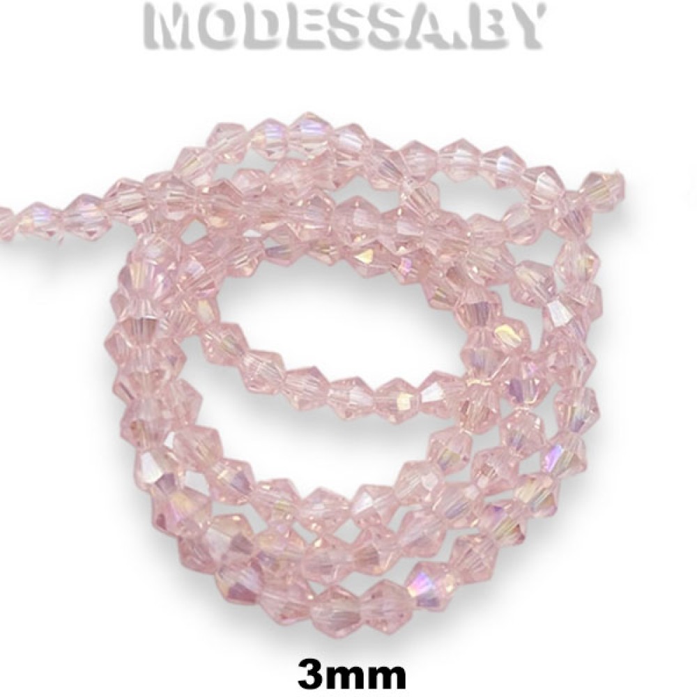 Бусины стеклянные граненые на нити биконусы (1нить=128шт), диаметр 3мм. Идеально подойдут для плетения браслетов, чокеров, колье, украшения ободков и других ювелирных изделий. Граненые хрустальные бусины кристаллы очень ярко переливаются, блестят. Бусины на нити так же подойдут для декора одежды и предметов интерьера и др.