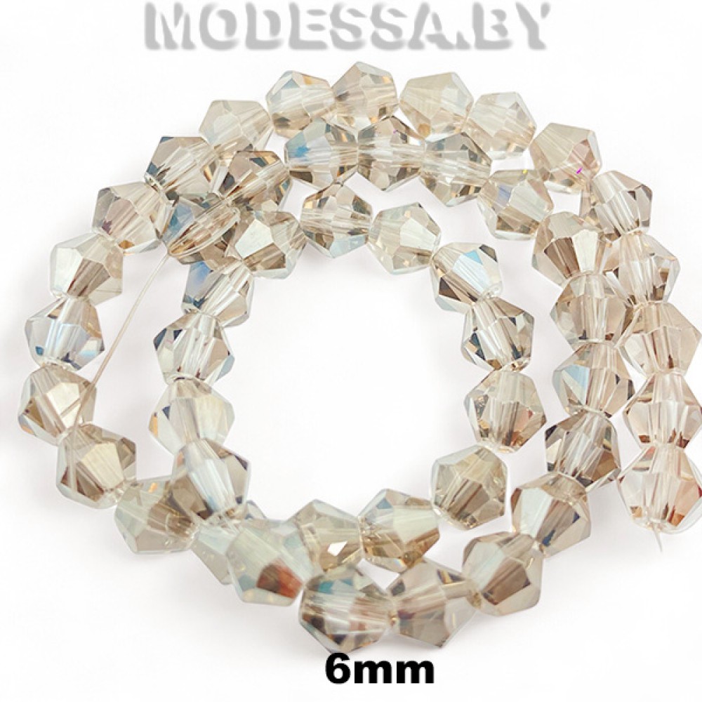 Бусины стеклянныеграненые на нити биконусы (1нить=46шт), диаметр 6мм. Идеально подойдут для плетения браслетов, чокеров, колье, украшения ободков и других ювелирных изделий. Граненые хрустальные бусины кристаллы очень ярко переливаются, блестят. Бусины на нити так же подойдут для декора одежды и предметов интерьера и др.