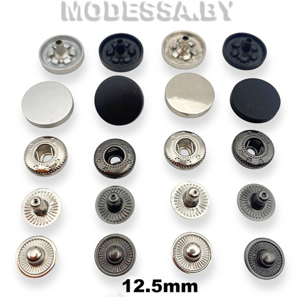 Кнопка металлическая "Альфа" B-12.5, диаметр 12,5мм. Кнопки для одежды – часто применяемый вид застёжки. Их используют для курток, рубашек, платьев, а также сумок и т. д. Преимущество кнопки в быстром и легком расстегивании. Кнопка состоит из 4-х частей. Установка застёжки кнопки на одежду производится с помощью пресса и специальных насадок. Не рекомендуется устанавливать кнопки на очень тонких и непрочных тканях.