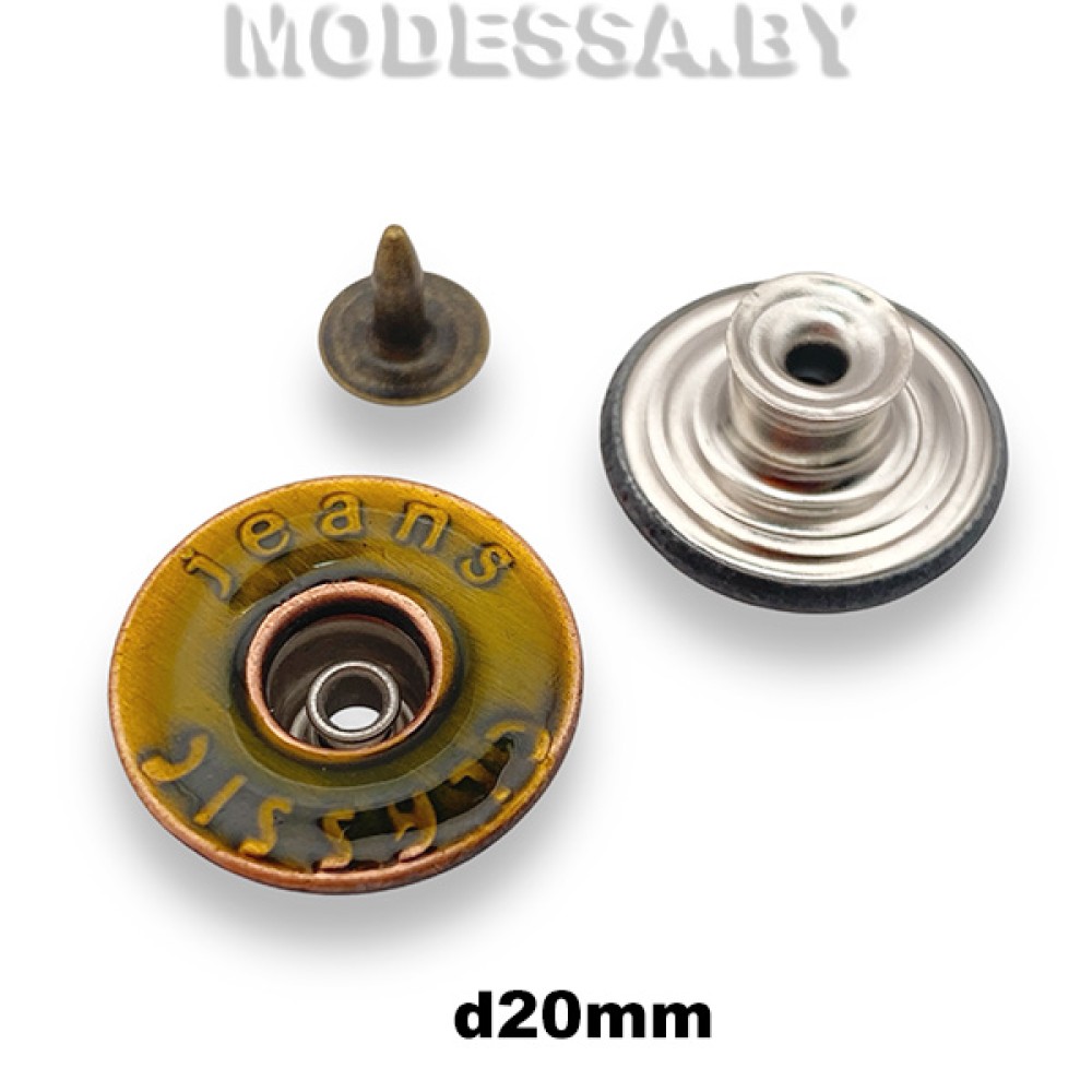 Заклёпка-пуговица металлическая, на плавающей ножке, артикул: 01725. Диаметр 20мм. Джинсовые пуговицы используются при изготовлении одежды и других изделий из джинсовой ткани. Данная пуговица будет эффектно смотреться как на одежде, так и на рюкзаке, сумке.