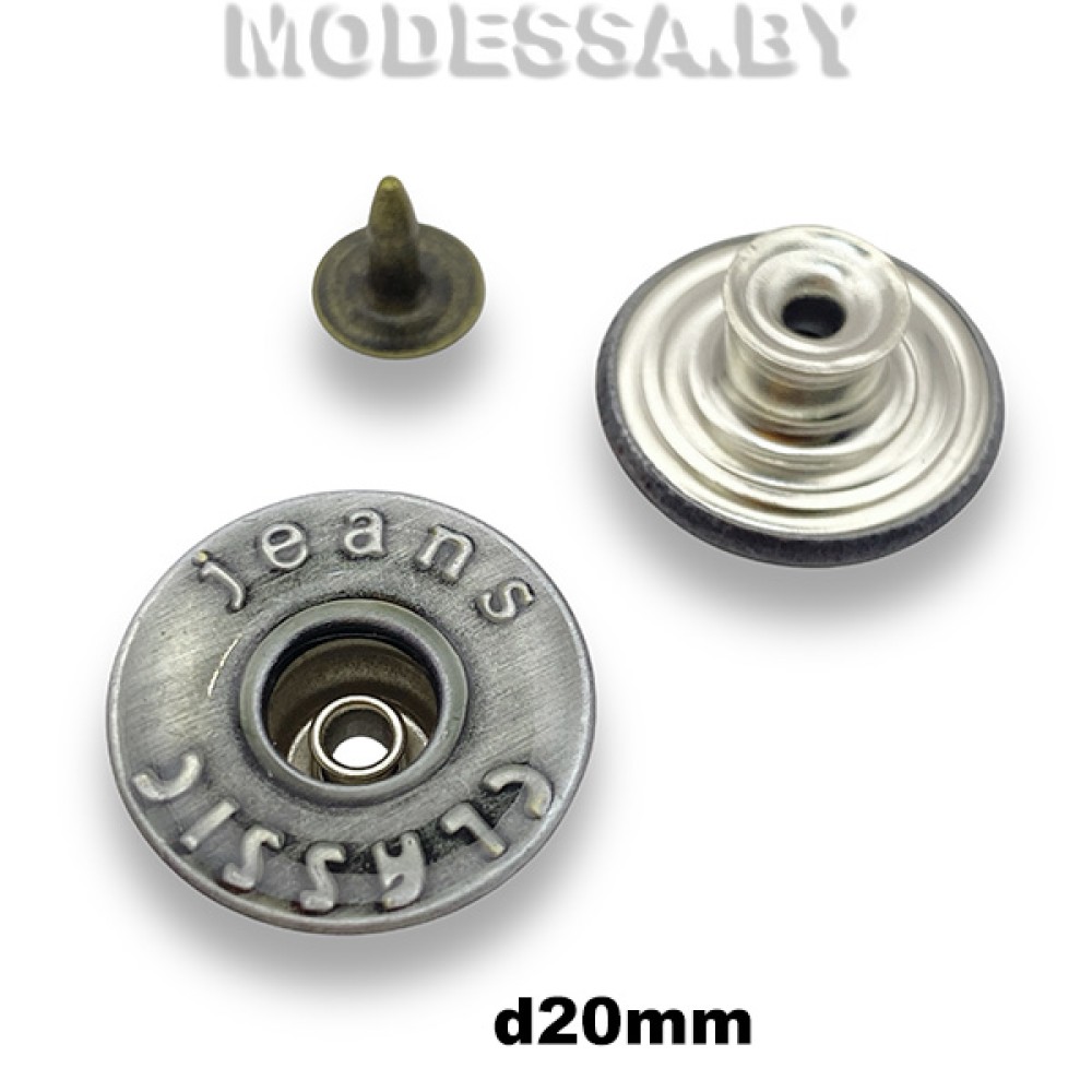 Заклёпка-пуговица металлическая, на плавающей ножке, артикул: 01725. Диаметр 20мм. Джинсовые пуговицы используются при изготовлении одежды и других изделий из джинсовой ткани. Данная пуговица будет эффектно смотреться как на одежде, так и на рюкзаке, сумке.