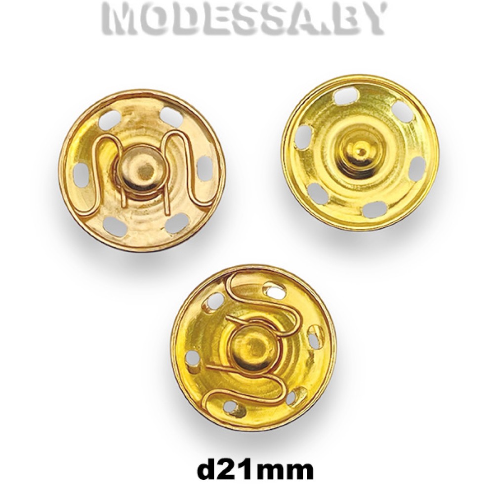 Кнопка металлическая пришивная, артикул: 02021. Диаметр 21мм. Можно использовать в качестве потайной застежки для женской, детской, легкой и верхней одежды. Прочные, гладкие, удобные в использовании. Не требуют дополнительного оборудования. Кнопки прочно фиксируются друг в друге в закрытом виде.