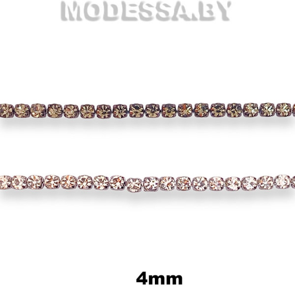 Цепочка из страз стеклянных в металлической оправе, артикул: 16 SS. Ширина 4мм. Состоит из последовательно закрепленных страз в цапах, которые скреплены между собой подвижной металлической пластинкой. Стразовая цепочка применяется для создания уникальных женских украшений, браслетов, колье, сережек, чокеров; декорирования клатчей, сумочек, головных уборов, обуви и др.