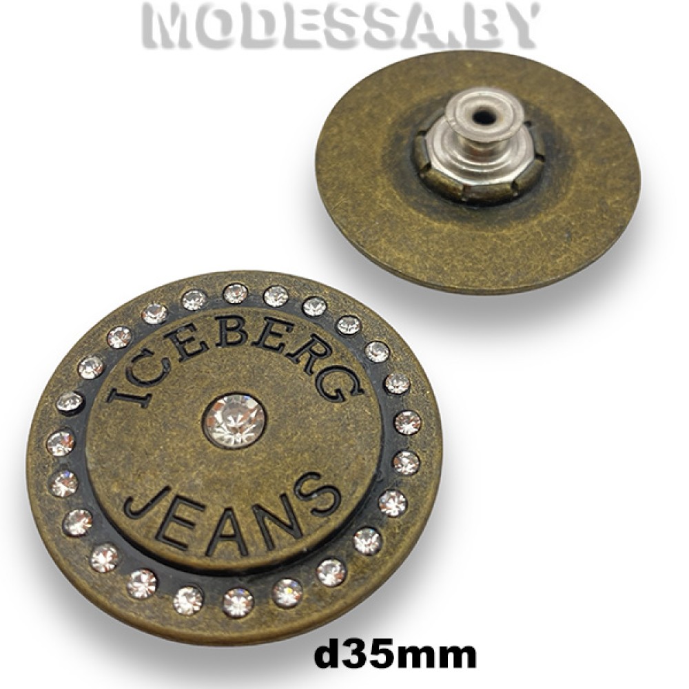 Заклёпка-пуговица металлическая со стразами "Iceberg Jeans", на плавающей ножке, артикул: 0555 СТМ. Диаметр 40мм. Джинсовые пуговицы используются при изготовлении одежды и других изделий из джинсовой ткани. Данная пуговица будет эффектно смотреться как на одежде, так и на рюкзаке, сумке. Устанавливается с помощью пресса.