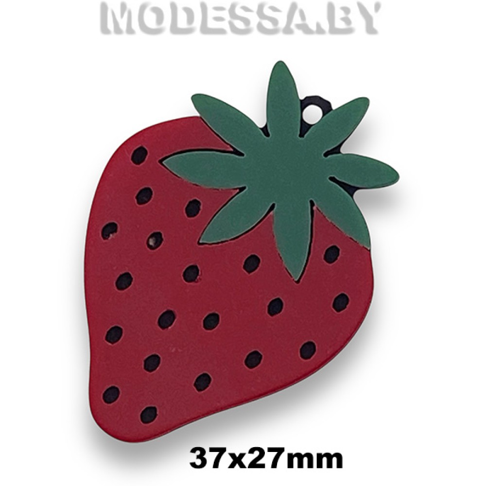 Украшение пластмассовое "Клубника", артикул: 065145 FTS. Размер 37х27мм. Украшение пришивное (подвеска) с одним отверстием и плоским дном используется для украшения одежды, обуви, сумок, для декорирования предметов интерьера и др.