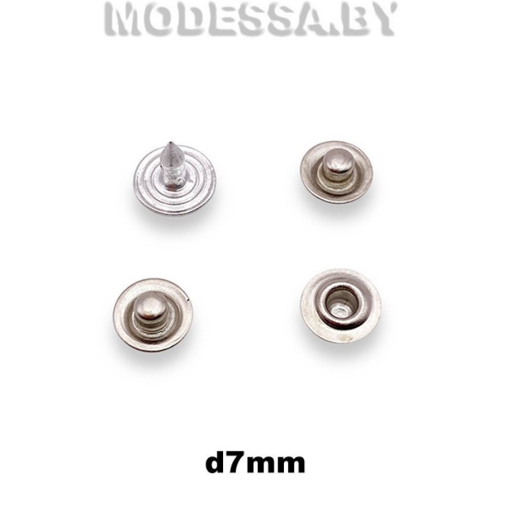 Заклёпка металлическая (хольнитен), артикул: 5506. Диаметр 7мм. Металлическая заклёпка или хольнитен — это декоративный элемент, придающий изделиям дополнительную прочность. Позволяет надежно соединить ткань в местах, подвергающихся нагрузкам. Хольнитены используются для укрепления швов на одежде, особенно на джинсах, куртках, сумках и рюкзаках и т. д.