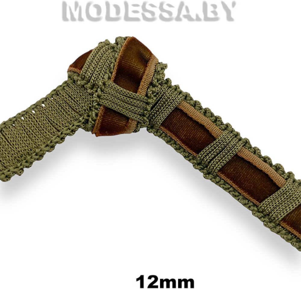 100 АН Тесьма велюр 12мм Ц:Зелёно-коричневый