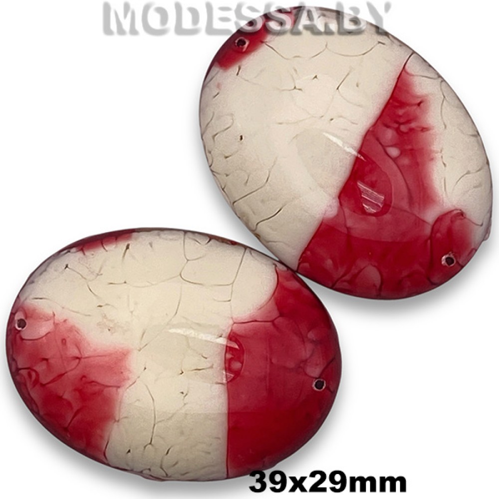 Украшение пластмассовое овальной формы, артикул: 10075 АС. Размер 39х29мм. Украшение с двумя отверстиями и плоским дном используется для украшения одежды, обуви, сумок, для декорирования предметов интерьера и др.