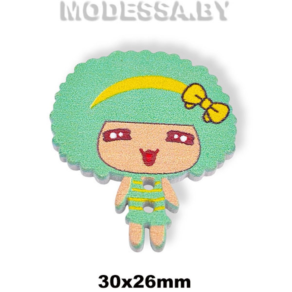 104Е-TH украшение деревянное девочка Зеленый 30х26мм