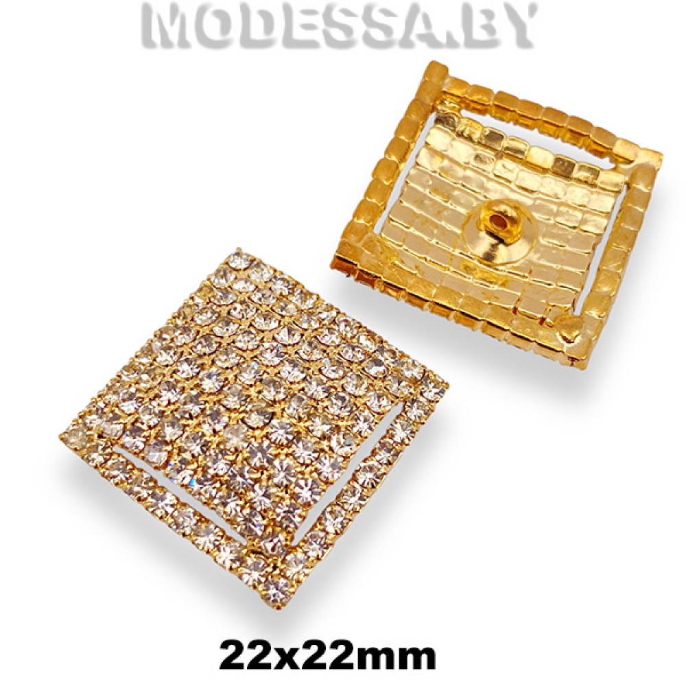 Пуговица пришивная металлическая декоративная со стразами, артикул: 1068, на ножке, размером 22х22мм. Используется в качестве застёжек в производстве одежды, головных уборов, аксессуаров, а также в декоративных целях для украшения различных изделий и декора.