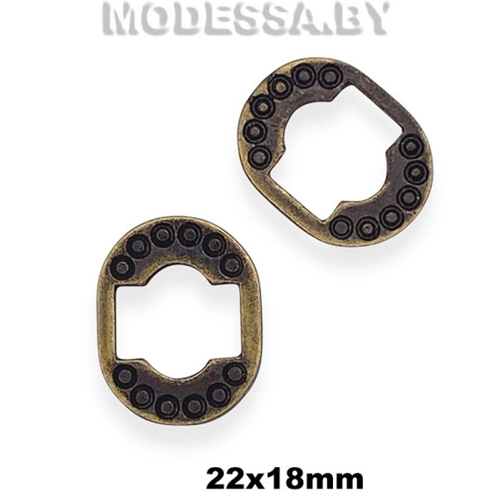 Украшение металлическое, артикул: 110. Размер 22х18мм. Ширина отверстия для протяжки 7мм. Может применяться как декор для одежды, кожгалантерейных изделий, головных уборов, обуви, сумок и др.