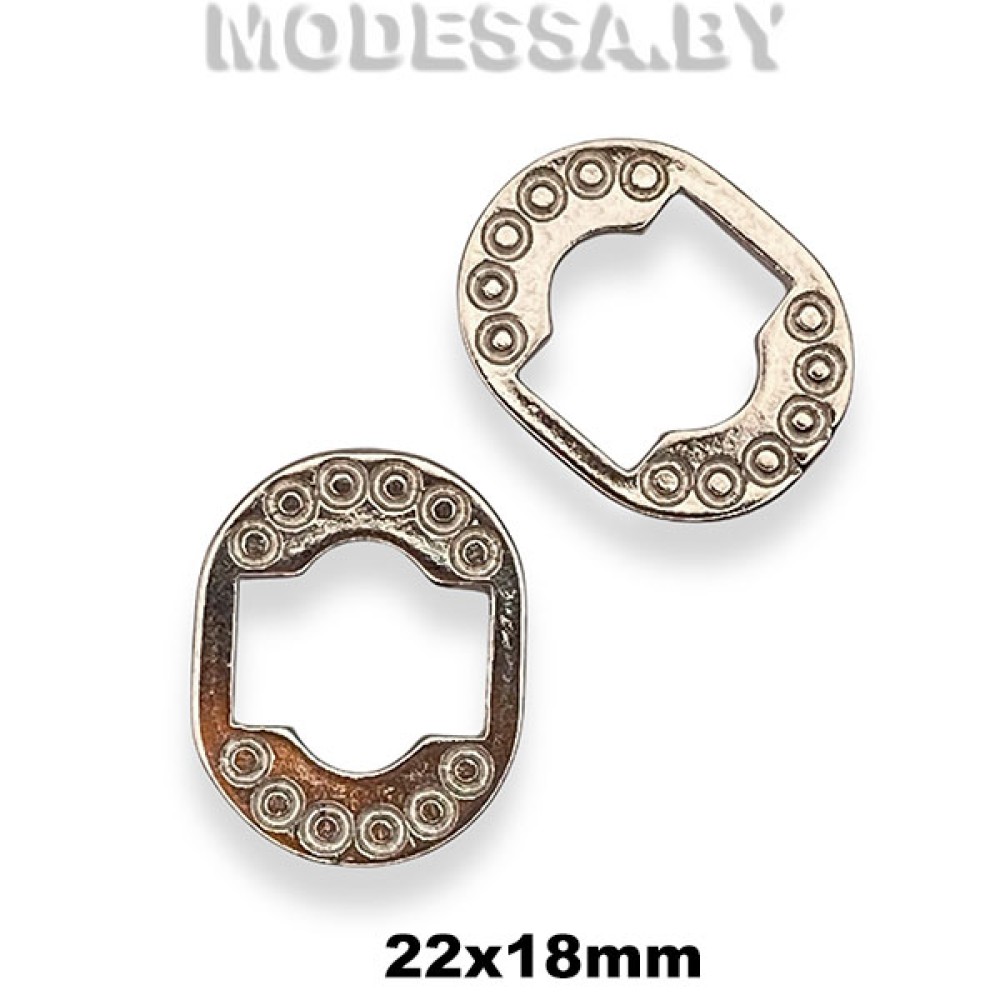 Украшение металлическое, артикул: 110. Размер 22х18мм. Ширина отверстия для протяжки 7мм. Может применяться как декор для одежды, кожгалантерейных изделий, головных уборов, обуви, сумок и др.