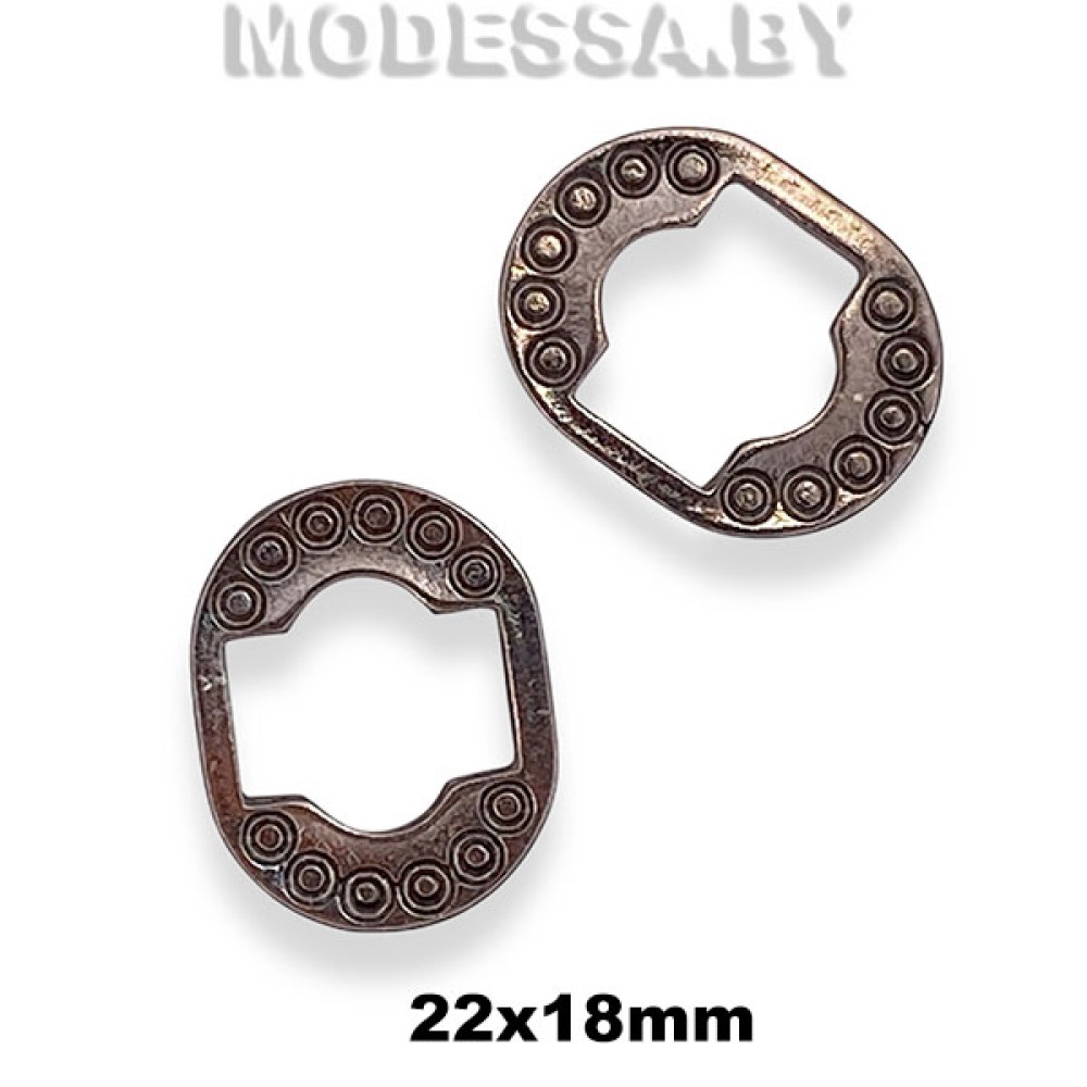 Украшение металлическое, артикул: 110. Размер 22х18мм. Ширина отверстия для протяжки 7мм. Может применяться как декор для одежды, кожгалантерейных изделий, головных уборов, обуви, сумок и др.