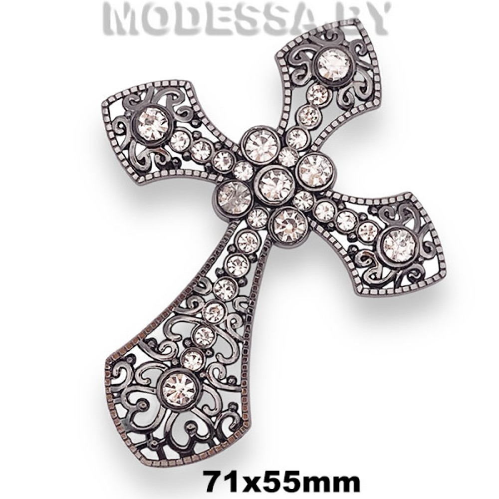 Украшение металлическое со стразами, имеет форму креста, артикул: 1108. Размер 71х55мм. Может применяться как подвеска, а также как декор для одежды, кожгалантерейных изделий, головных уборов, обуви, сумок и др.