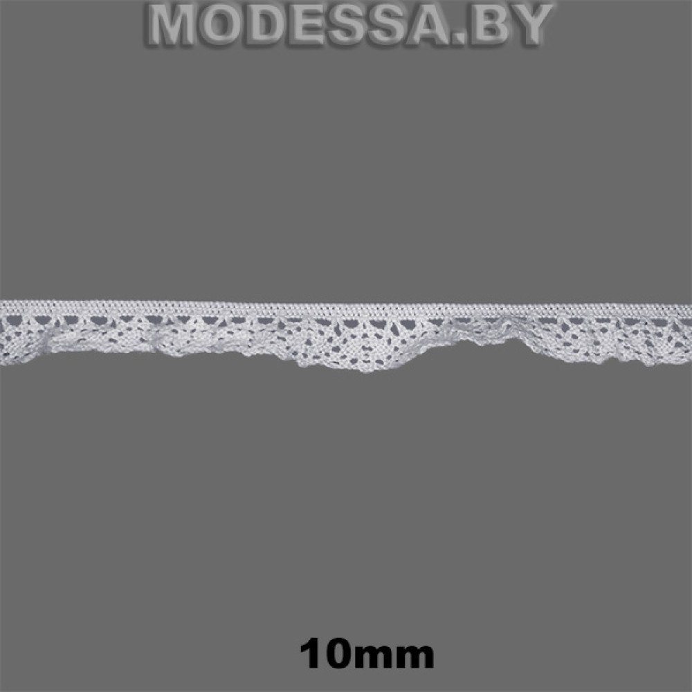 Кружево хлопковое эластичное, артикул: 113-2 S-W. Ширина 10мм. Применяется при пошиве одежды, белья и домашнего текстиля, а также используют для декора других материалов.