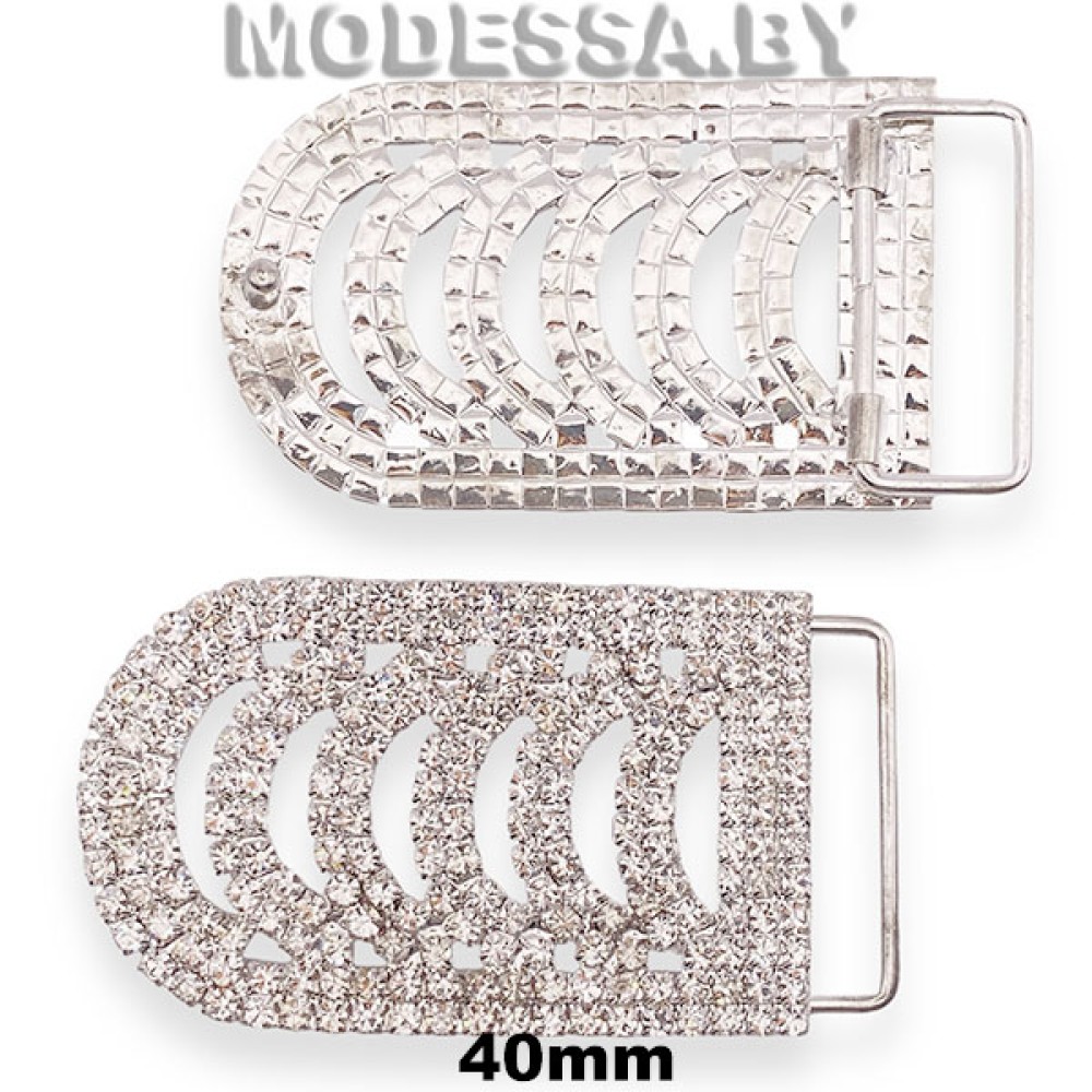 Пряжка-бляха металлическая со стразами, артикул: 1190 JRD. Размер 82х50мм. Ширина отверстия для протяжки 40мм. Подходит для ремней из натуральной или искусственной кожи, ременной ленты (стропы). С внутренней стороны располагается штырек с утолщением на конце, который продевается в отверстие на ремне. Пряжка используется, чтобы регулировать и фиксировать длину ремня.