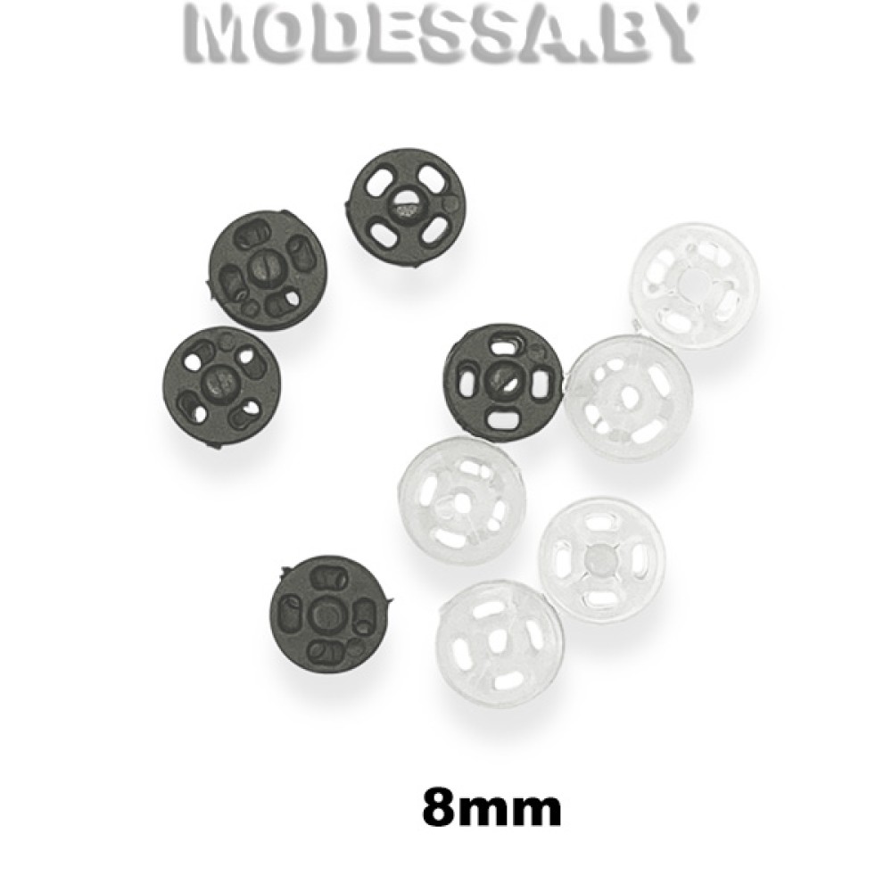 Кнопка пластмассовая пришивная. Диаметр 8мм. Можно использовать в качестве потайной застежки для женской, мужской и детской, легкой и верхней одежды. Прочные, гладкие, удобные в использовании. Не требуют дополнительного оборудования.