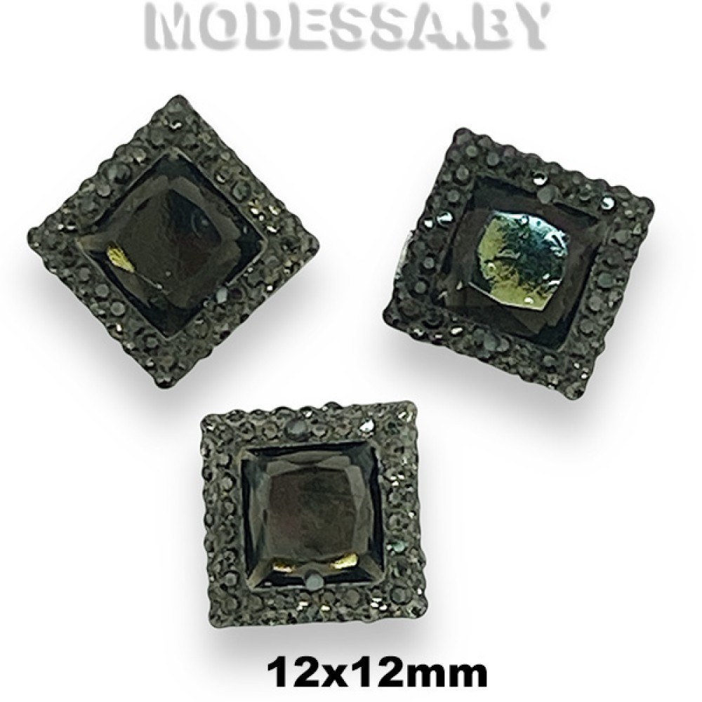 Украшение пластмассовое пришивное квадратной формы, артикул: 12 STW. Размер 12х12мм. Украшение с двумя отверстиями и плоским дном используется для украшения одежды, обуви, сумок, для декорирования предметов интерьера, творческих поделок и др.