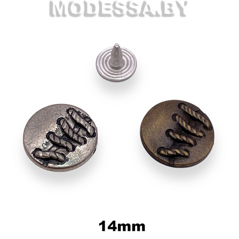 Заклёпка металлическая (хольнитен), артикул: 1400410. Диаметр 14мм. Металлическая заклепка или хольнитен — это не просто декоративный элемент, а функциональная деталь, придающая изделиям дополнительную прочность. Хольнитены используются для укрепления швов на одежде, особенно на джинсах, куртках, сумках и рюкзаках и т. д.