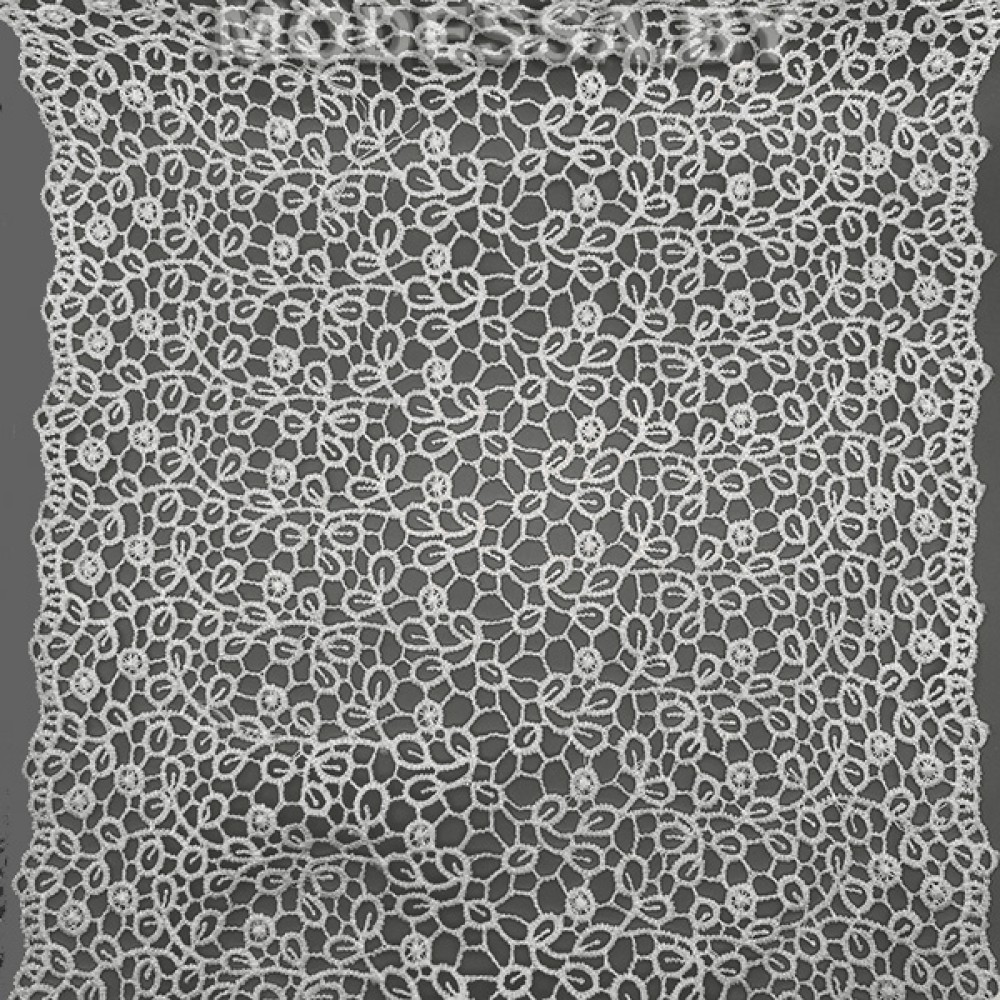 Кружево синтетическое гипюр, артикул: 1239 FY. Ширина 220мм. Благодаря жесткости, гипюр хорошо держит форму. Применяется при пошиве одежды, белья и домашнего текстиля, а также используют для декора других материалов.