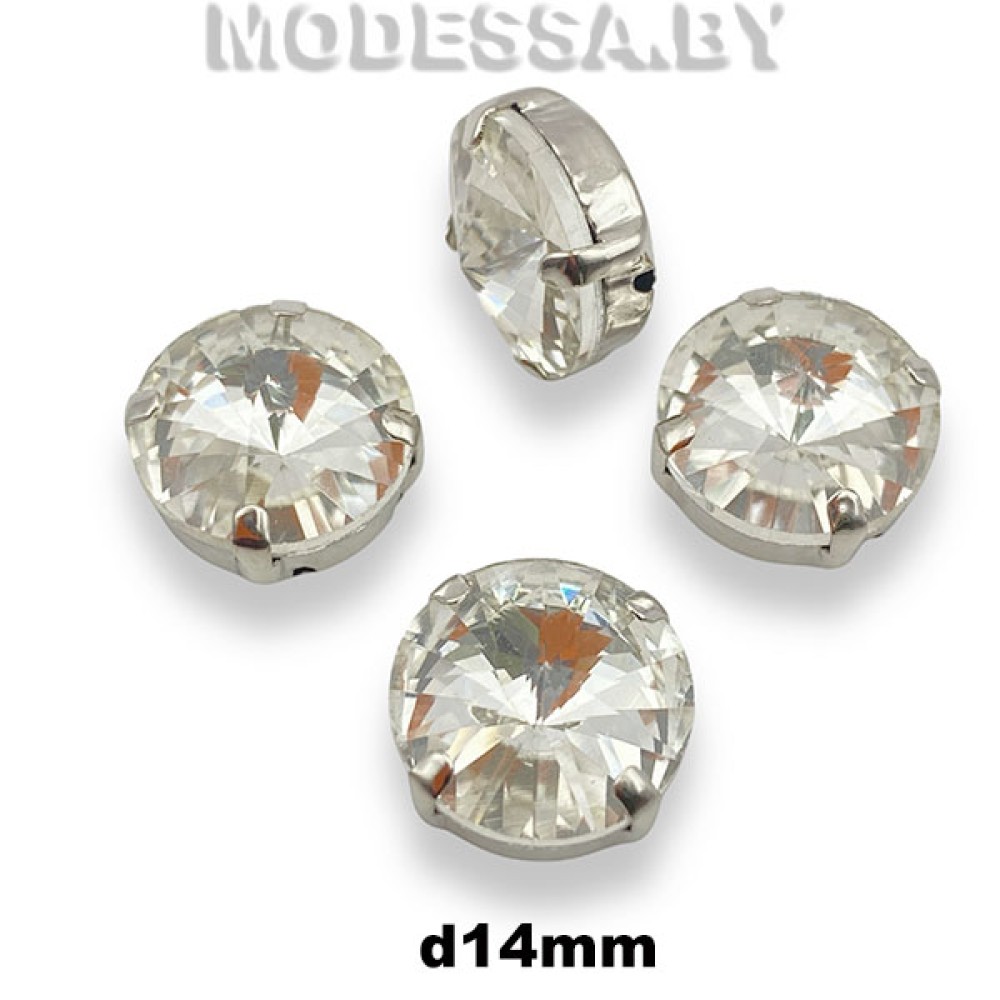 Стразы стеклянные в металлической оправе круглой формы, артикул: 14. Диаметр 14мм. Пришивные стразы из стекла прекрасно подойдут для декора одежды и аксессуаров. Благодаря своей яркости и блеску, они добавят изделиям изысканности и элегантности. Крепятся к изделию путём пришивания металлической цапы, в которую вставлена страза.