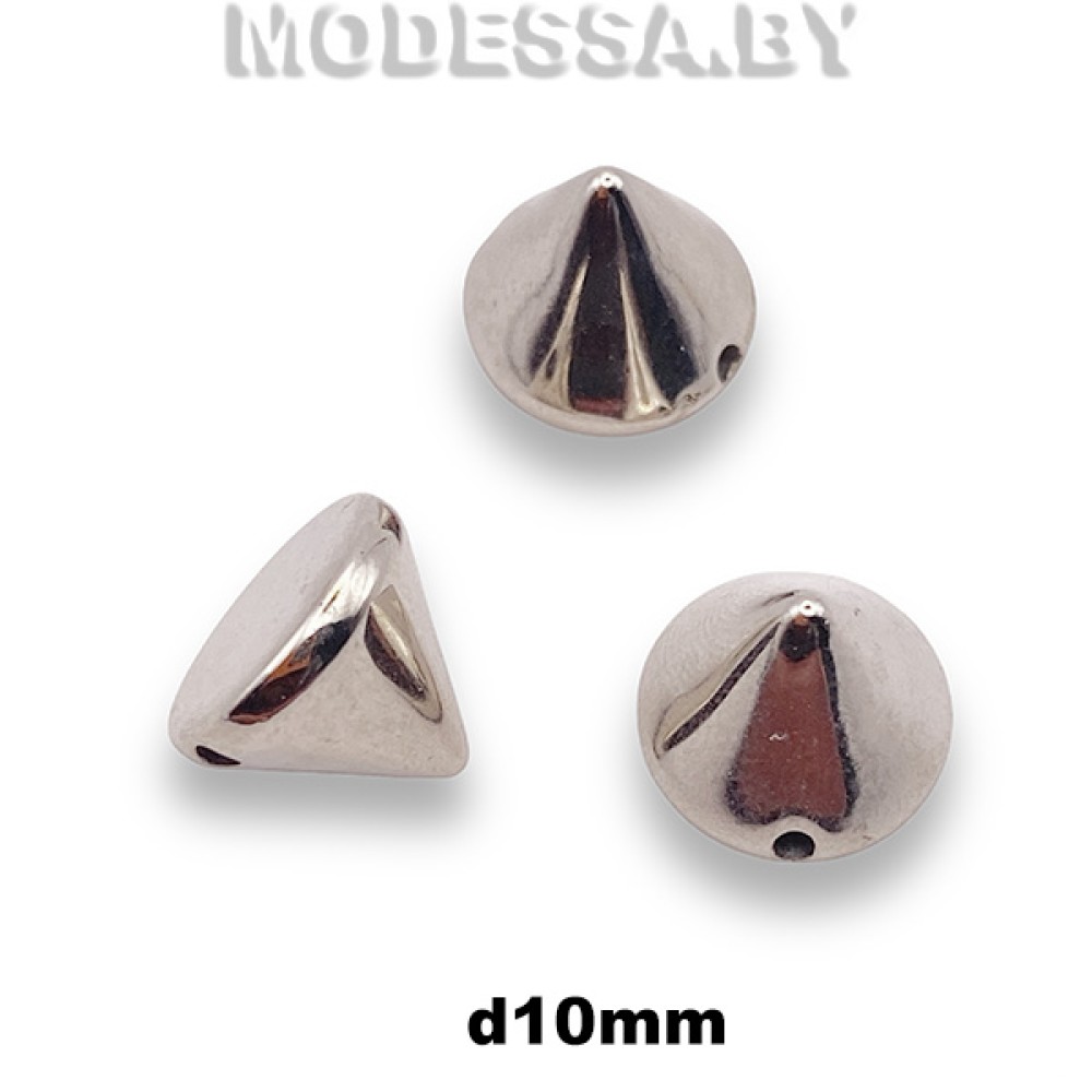 Украшение пластмассовое пришивное в форме конуса, артикул: 1405. Имеет плоское дно с двумя отверстиями. Диаметр 10мм. Высота 8мм. Используются для изготовления браслетов, декорирования одежды и аксессуаров. Шипами можно украсить практически любую вещь: кожаные куртки, бейсболки, сумки, ремни, воротнички блузок и обувь. Декорирование одежды шипами позволит создать модный, броский образ.