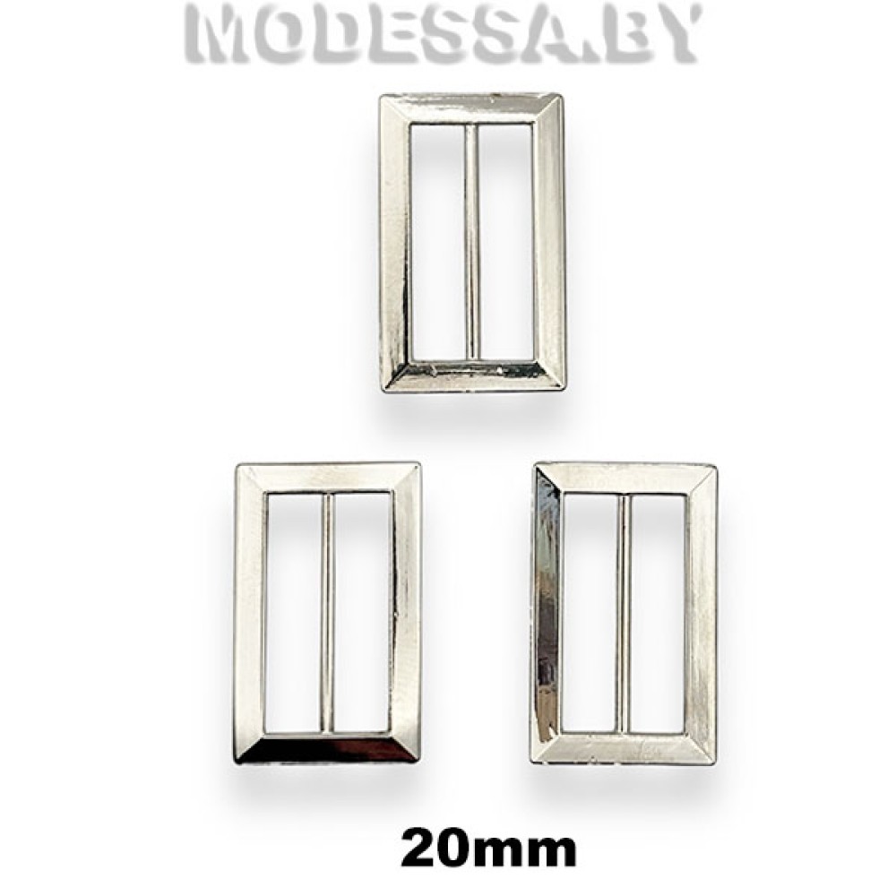 Пряжка металлическая двухщелевая, артикул: 1500. Размер 25х16мм. Ширина отверстия для протяжки 20мм. Используется для регулировки длины ремней в одежде и аксессуарах, таких как рюкзаки и сумки. Рамка неразъемная, имеет перекладину.