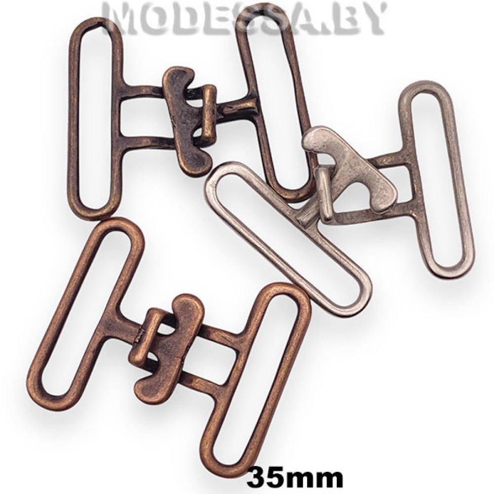 Пряжка-застёжка металлическая, артикул: 1620. Размер в застёгнутом виде 50х40мм. Ширина отверстия для протяжки 35мм. Застёжка состоит из двух частей, которые вставляются одна в другую. Используется как функциональный и декоративный элемент в одежде, кожгалантерейных изделиях и т. д.
