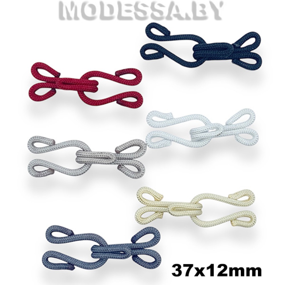 Крючок обтяжной металлический #3.5. Размер 37х12мм. Крючок-петля в оплетке из синтетической нити позволяет создать потайную застежку на брюках, юбке, корсете и других изделиях. Обеспечивает прочное соединение, легко застегивается и расстегивается. Оплетка предотвращает скольжение.
