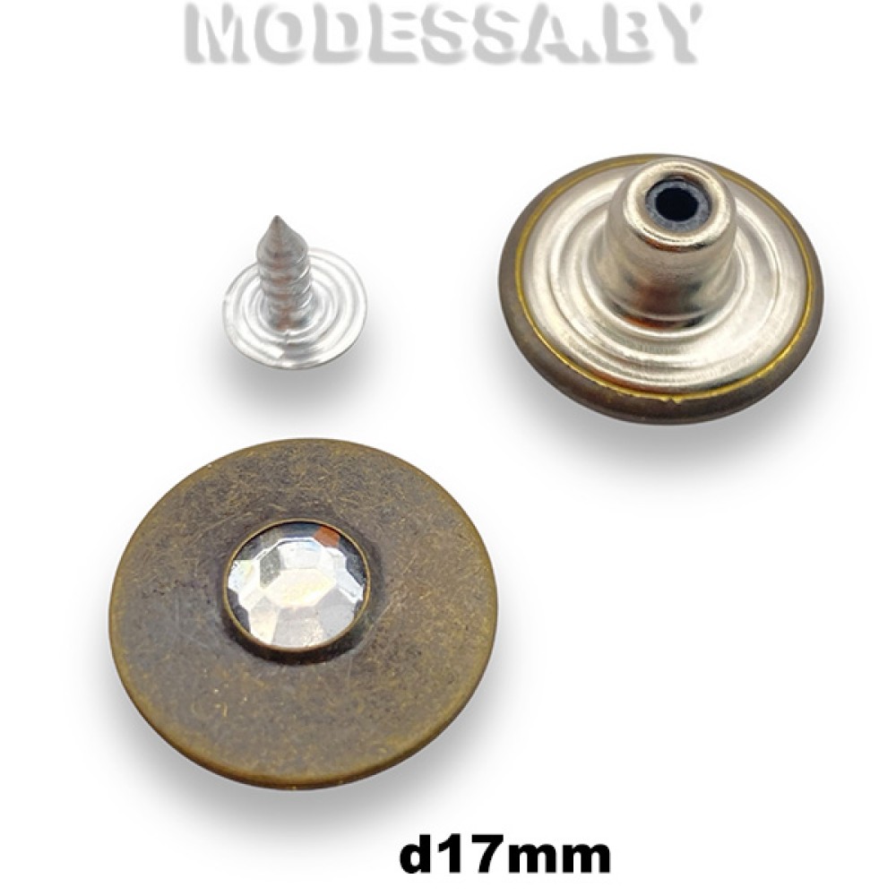 Технические характеристики 1701609 Заклёпка-пуговица d17мм Ц:Антик/Кристалл