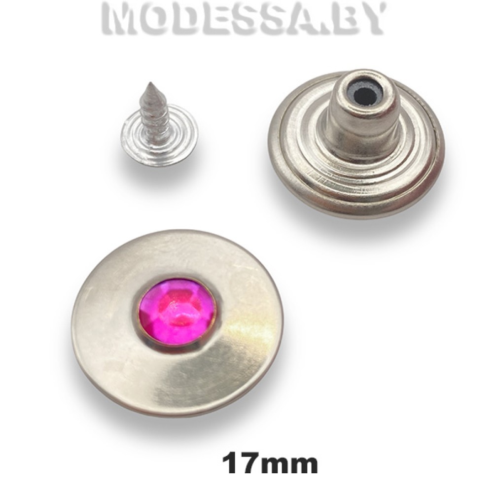 Заклёпка-пуговица металлическая со стразами, на фиксированной ножке, артикул: 1701609. Диаметр 17мм. Джинсовые пуговицы используются при изготовлении одежды и других изделий из джинсовой ткани. Данная пуговица будет эффектно смотреться как на одежде, так и на рюкзаке, сумке.