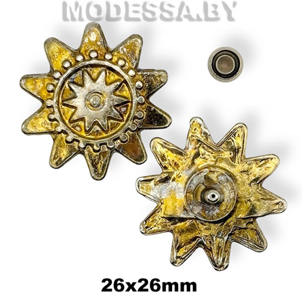 Украшение металлическое на прокол, артикул: 1771. Размер 26х26мм. Используется как декоративный элемент для украшения одежды, кожгалантерейных изделий, головных уборов, обуви и др.