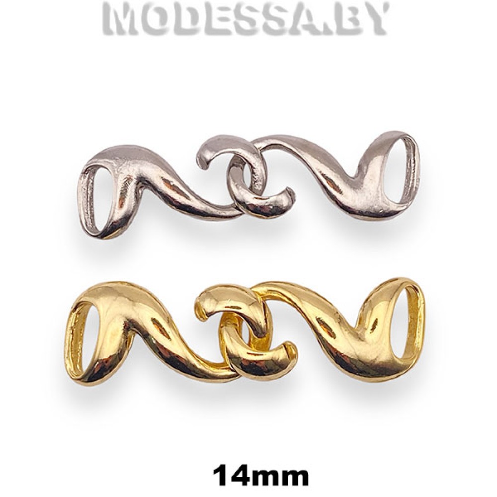 Пряжка-застёжка металлическая, артикул: 1776. Ширина отверстия для протяжки 14мм. Застёжка состоит из двух частей, которые вставляются одна в другую. Используется как функциональный и декоративный элемент в одежде, кожгалантерейных изделиях и т. д.