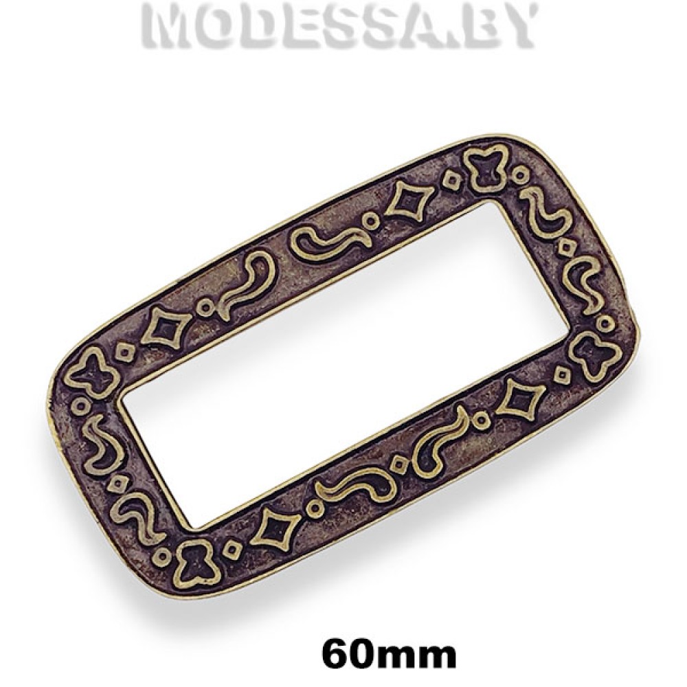 Пришивная декоративная пряжка, артикул: 1821. Размер 83х45мм. Ширина отверстия для протяжки 60х20мм. Может применяется как декор для одежды, кожгалантерейных изделий, головных уборов, обуви, сумок и др.