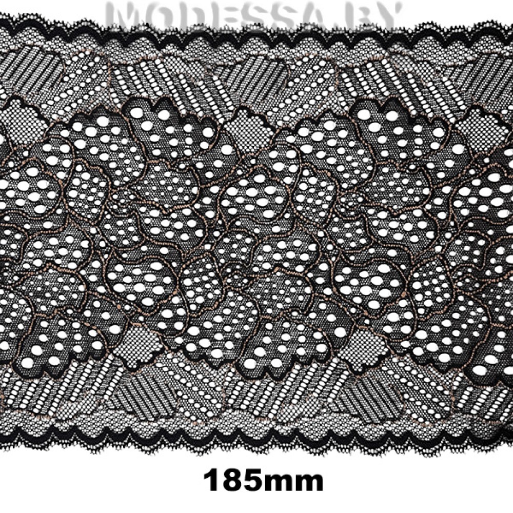 | 1 Тип товараКружево синтетическое стрейчевое | 3 ЦветБежевый,Черный | 2 Ширина, мм185 |