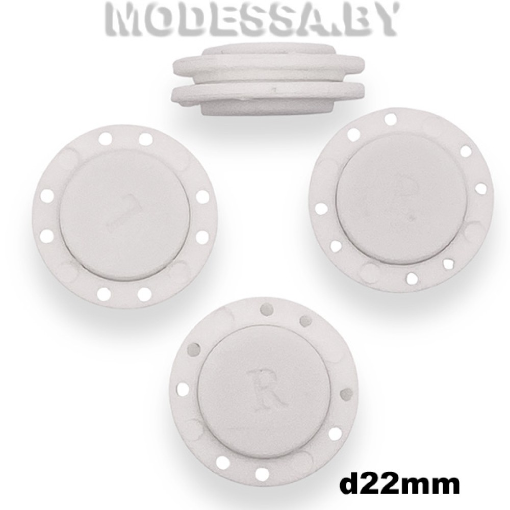 Кнопка пластмассовая магнитная пришивная, артикул: 2026. Диаметр 22мм. Пришивная магнитная кнопка применяется в качестве застежки в сумках, верхней и специализированной одежде, вязанных изделиях. Магнит обеспечивает прочное соединение пришивных деталей.