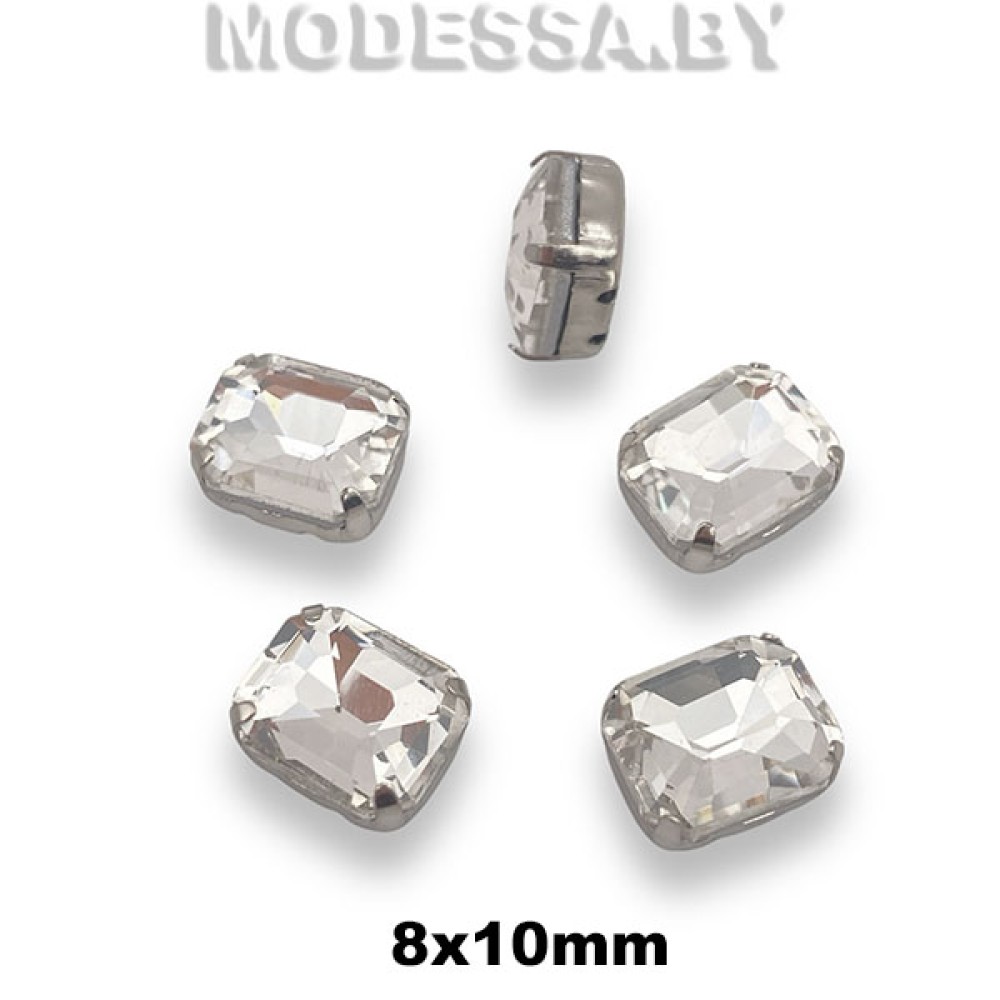 Стразы стеклянные в металлической оправе прямоугольной формы, артикул: 2178. Размер 8х10мм. Пришивные стразы из стекла прекрасно подойдут для декора одежды и аксессуаров. Благодаря своей яркости и блеску, они добавят изделиям изысканности и элегантности. Крепятся к изделию путём пришивания металлической цапы, в которую вставлена страза.
