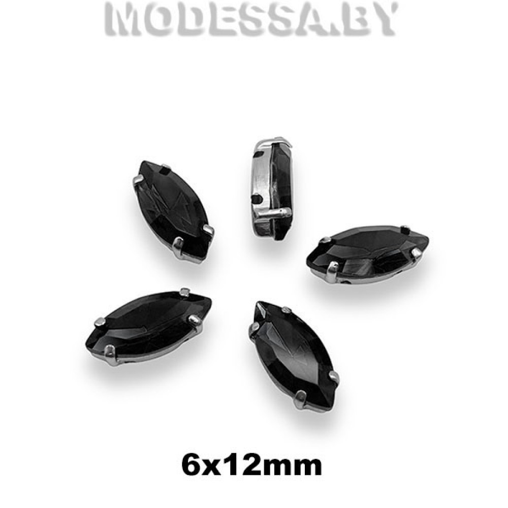 2051 6х12мм стразы стекл. в оправе Ц:Чёрный
