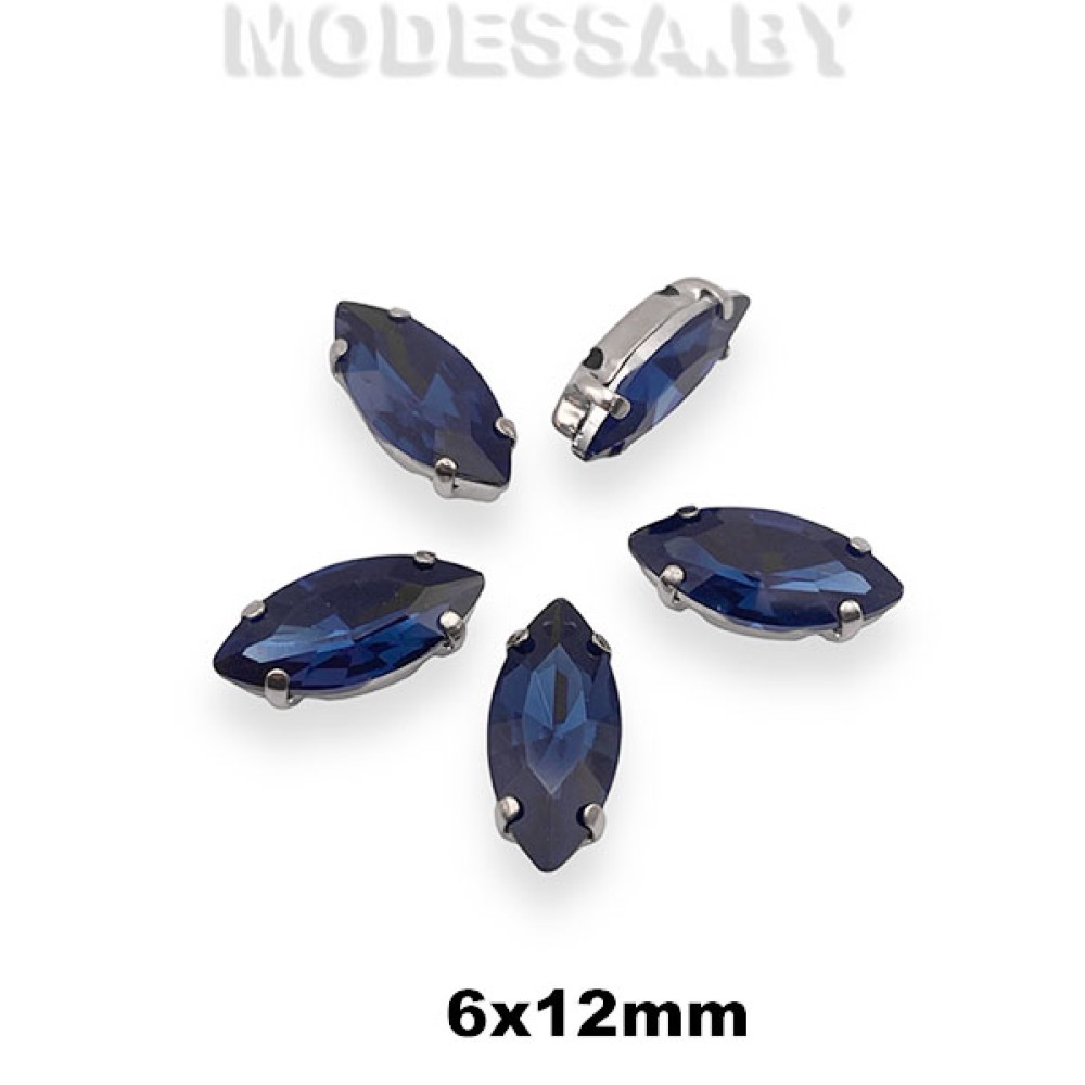 2051 6х12мм стразы стекл. в оправе Ц:Синий