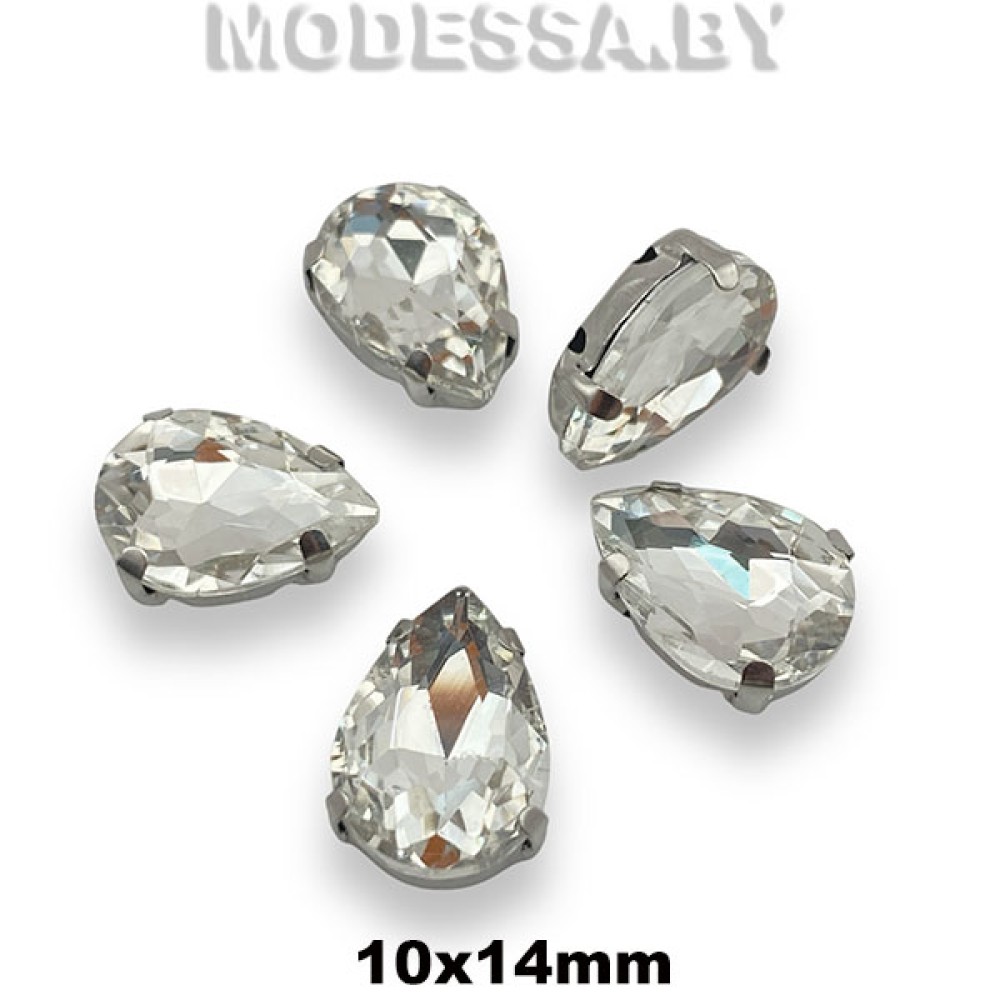 Стразы стеклянные в металлической оправе, артикул: 2061. Размер 10х14мм. Пришивные стразы из стекла прекрасно подойдут для декора одежды и аксессуаров. Благодаря своей яркости и блеску, они добавят изделиям изысканности и элегантности. Крепятся к изделию путём пришивания металлической цапы, в которую вставлена страза.