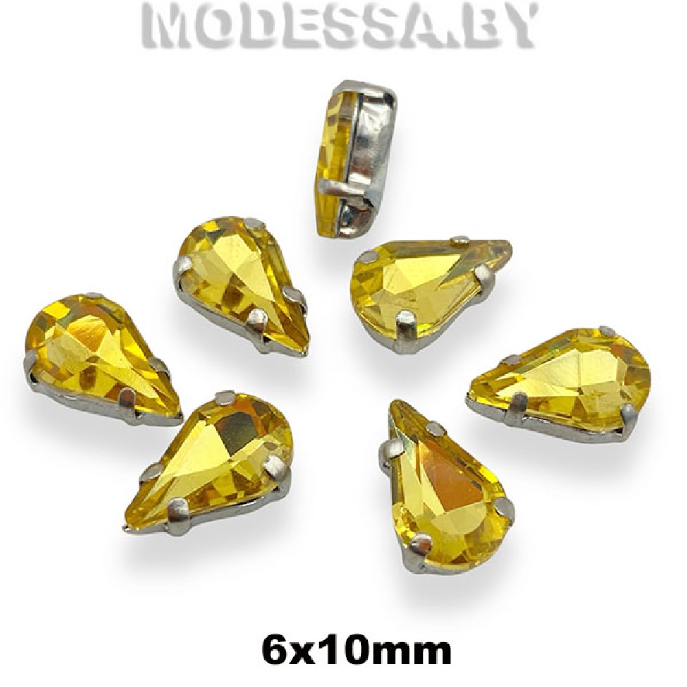 Стразы стеклянные в металлической оправе, артикул: 2061. Размер 6х10мм. Пришивные стразы из стекла прекрасно подойдут для декора одежды и аксессуаров. Благодаря своей яркости и блеску, они добавят изделиям изысканности и элегантности. Крепятся к изделию путём пришивания металлической цапы, в которую вставлена страза.