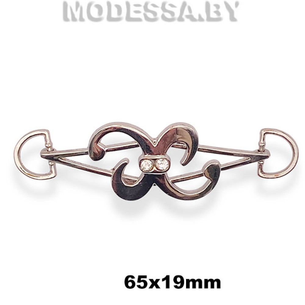 Пришивное украшение металлическое, артикул: 20629 SH. Размер 65х19мм. Ширина отверстия для протяжки 5мм. Модель украшения идеально подходит для декорирования горловины блузок, рубашек или платьев, а также для декоративного оформления сумок, аксессуаров и др.