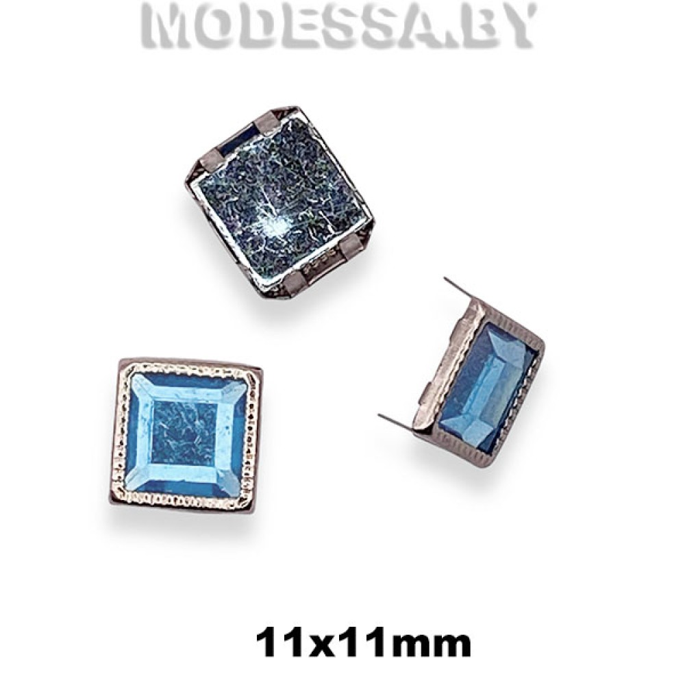 2074 Заклёпка 11х11мм Ц:Никель/Голубой