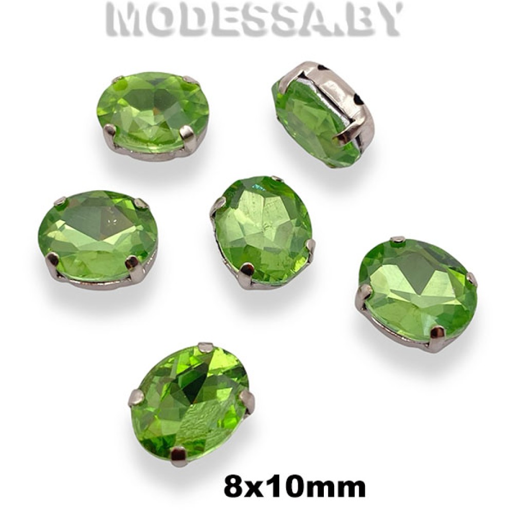 2091 8х10мм стразы стекл. в оправе Ц:Салатовый